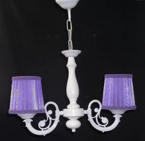 2 li lila başlıklı avize,ahşap gövdeli,döküm kollu.yukarı bakan 2 li avize.oturma,yatak,çocuk,salon avizesi