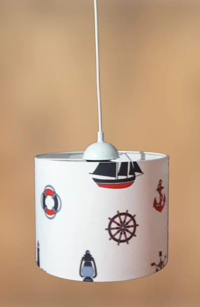 Denizci çocuk odası,genç odası avizesi genişlik:25 cm,beyaz plastik askılı,askı boyu ayarlanabilir.pasta modeli denizci avize