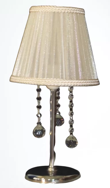 Krem başlıklı taşlı abajur,metal krom kaplama ayak,e 27 duy,2m.açma kapama anahtarlı kablo