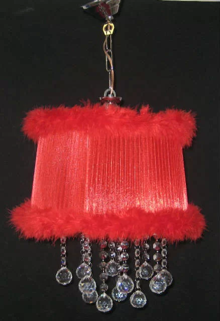 Kırmızı malibu tüylü taşlı yatak odası avizesi,30 luk toptaşlı,kırmızı tül kumaşlı